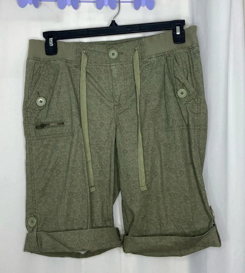 Relativity women’s khaki green floral print stretch tie cuffed long shorts Size 8 In good used cond... Show more
