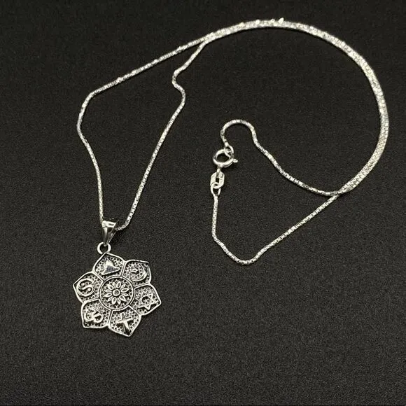 Religious Spiritual Symbols Sterling Silver Necklace Pendant Metal Material: 925 Stamped Sterling silver Finish: Oxidized Pendant Height: 19.6mm Chain 16” Italian Sterling Silver Diamond Cut Box Chain