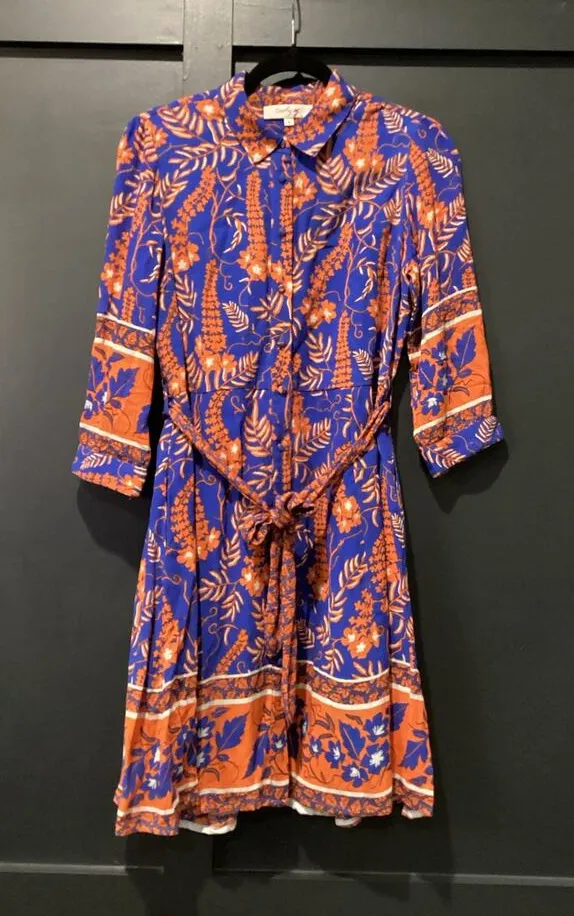 Rene Derhy Ainoa Waist Belted Three Quarter Sleeve shirt Dress Floral viscoe S Blue - $78 - From Miriam