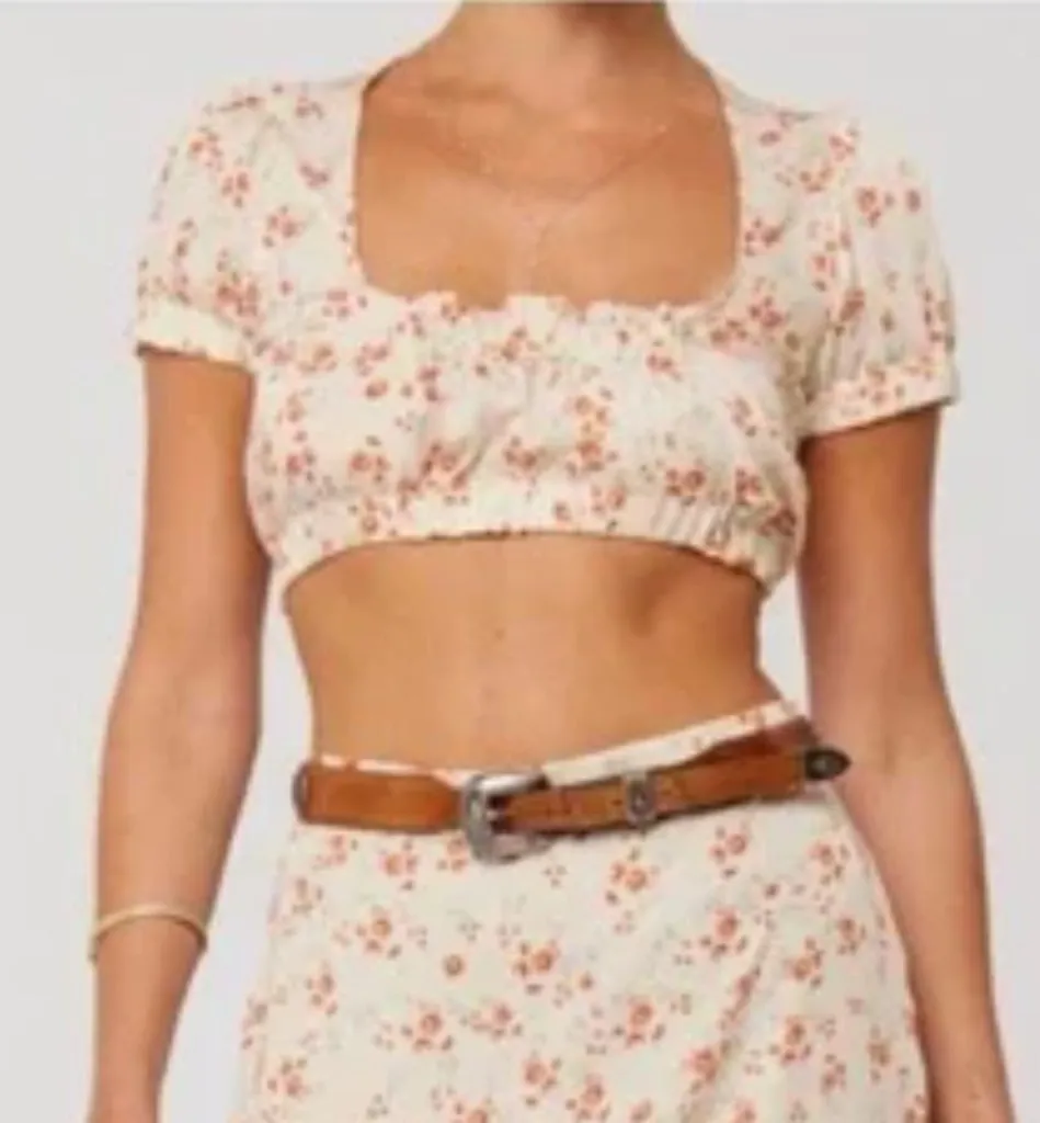 RESA Beige Pink Floral Cropped Short Sleeve Blouse XS Red - $38 - From Erin