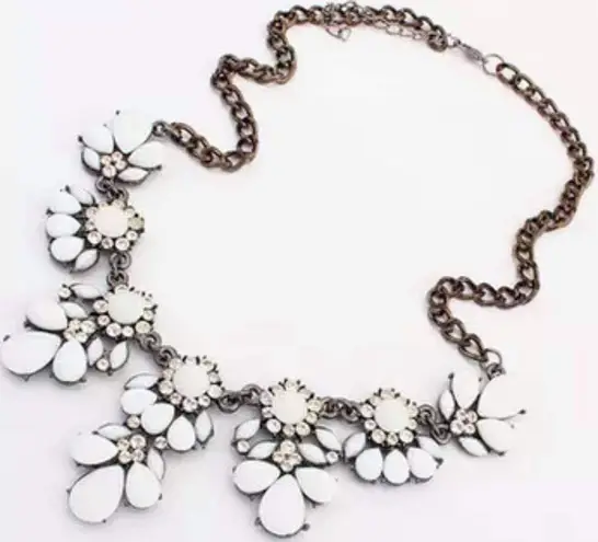 Resin Gems and Rhinestone Summer Style Flowers High Fashion Necklace White - $10 New With Tags - From Misty