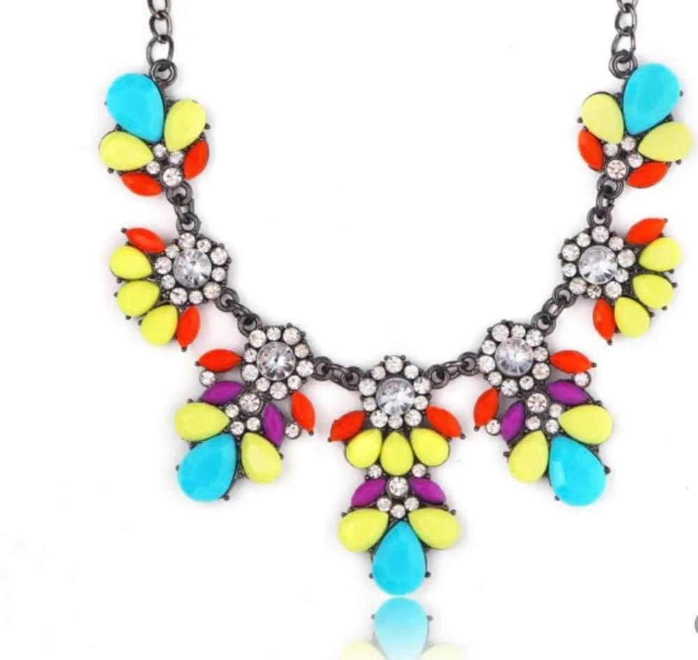Resin Gems and Rhinestone Summer Style Flowers High Fashion Necklace Multiple - $10 - From Misty