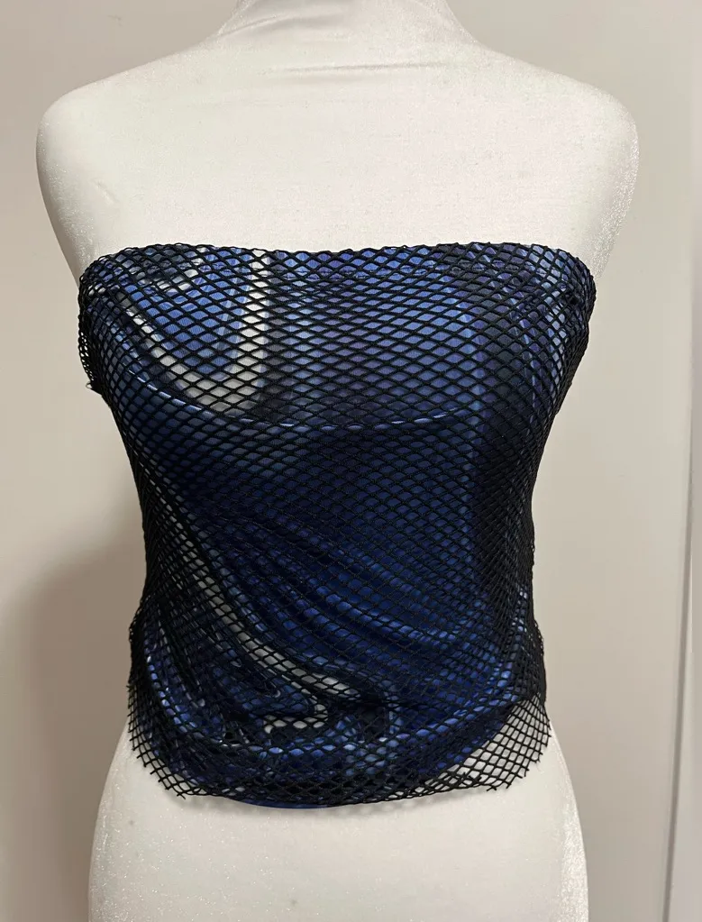 Retro Goth Midnight Swirl Y2K Tube Top Sleeveless Strapless Fish Net Sz S EUC Blue - $20 - From Tara