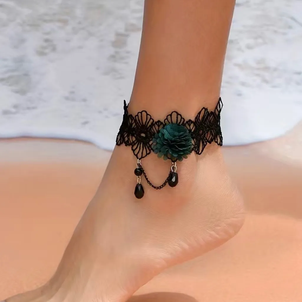 Retro/Vintage Style Hallow Black/Green Flower Lace Anklet Faux‎ Fashion Jewelry Black - $16 New With Tags - From Mon
