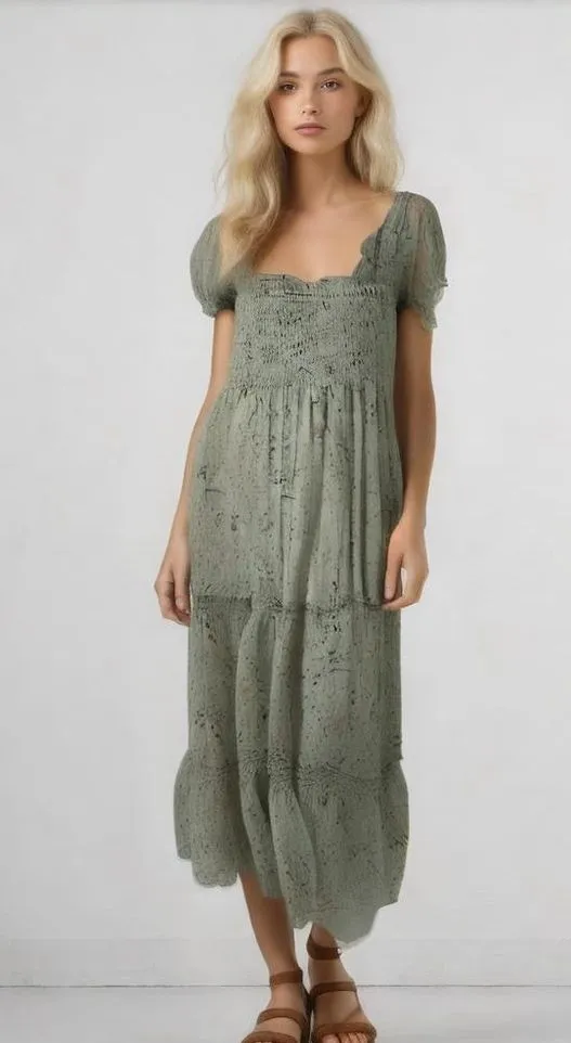 In brand new without tags condition. There are no issues or flaws. Top of shoulder to bottom hem measurement is approximately 44 inches. Armpit to armpit measurement is approximately 15 inches unstretched. Waist measurement is approximately 15 inches unstretched. Discover the charm of summer with Reveriee's enchanting green midi dress. This casual yet elegant piece features a delightful floral pattern that dances across its woven fabric. The square neckline and puff sleeves add a touch of sophistication, while the tiered skirt flows gracefully, making it perfect for any warm-weather occasion. Designed for comfort and style, this dress is machine washable, ensuring easy care. Available in size L, it's new with tags, ready to elevate your wardrobe. Keywords: Reveriee, green midi dress, floral pattern, square neckline, puff sleeves, tiered skirt, summer dress, casual wear, elegant, women's fashion, size L, machine washable, new with tags. Brand: Reveriee Size: L Style: Tiered, Midi Dress length: Midi Color: Green Department: Women Pattern: Floral Sleeve length: Short Sleeve Occasion: Casual Material: Polyester Fabric type: Woven Theme: Elegant, Floral Neckline: Square Neck Season: Summer Sleeve type: Puff Sleeve Features: Square Neckline, Puff Sleeves, Tiered Skirt Garment care: Machine Washable Item#6959