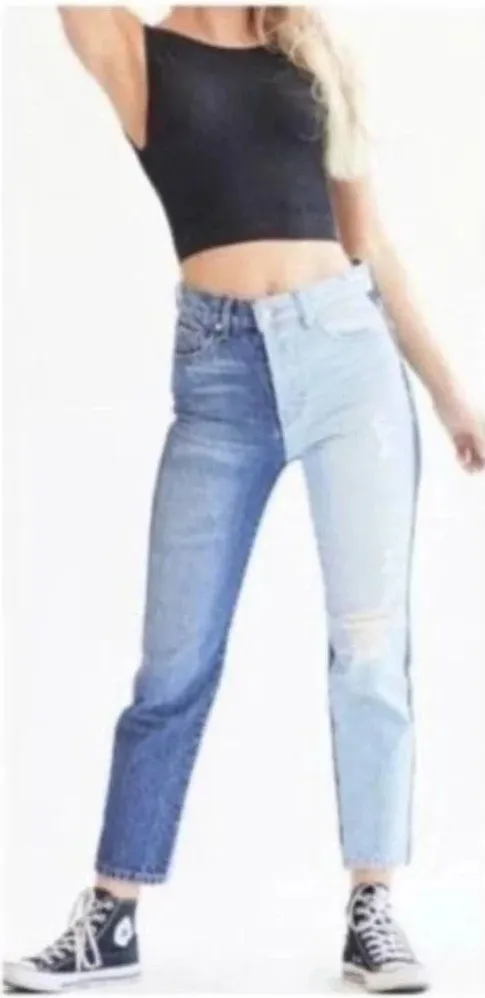 REVICE Two-Tone Yin Yang Jeans Fun two-tone design. Intentionally distressed. Flattering high waist... Show more
