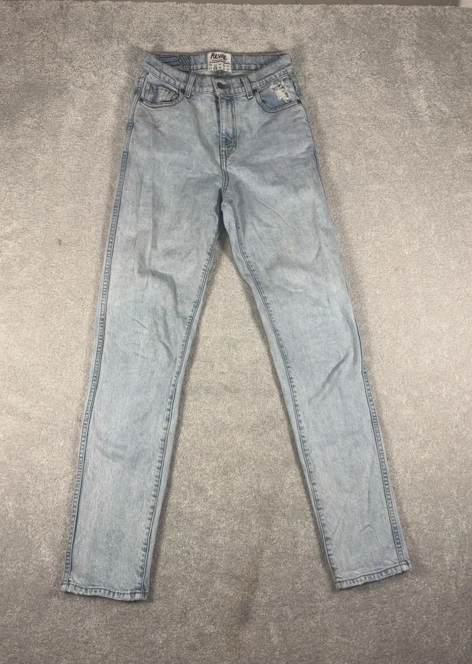The product described is a pair of women's Revice jeans with a straight leg and tapered leg, in a li... Show more