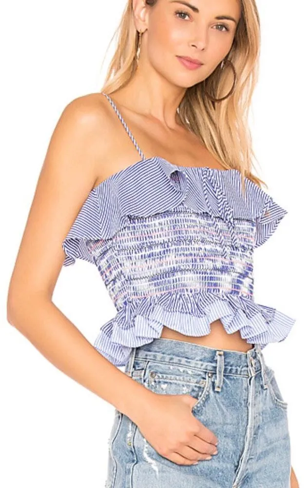 blue tank with ruffled hem. Never worn.
