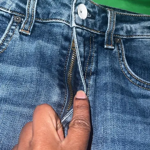 Stylish denim skirt with a trendy distressed hem. Perfect for casual outings. Measurements (approxi... Show more