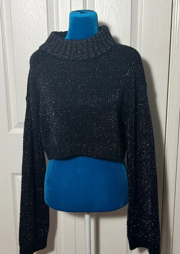 Revolve h:ours Cropped Sparkly Sweater Medium Size medium Navy blue with sparkle 22 inches pit t... Show more