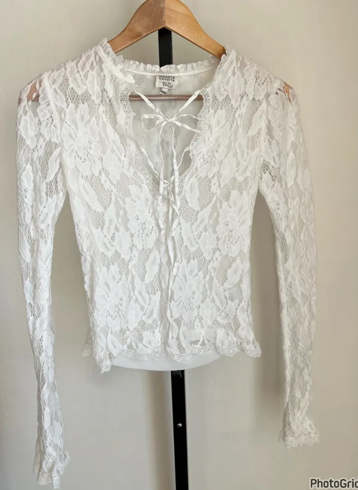 Revolve Hemant & Nandita White Lace Tie Up Top Xs - $95 - From Kaley