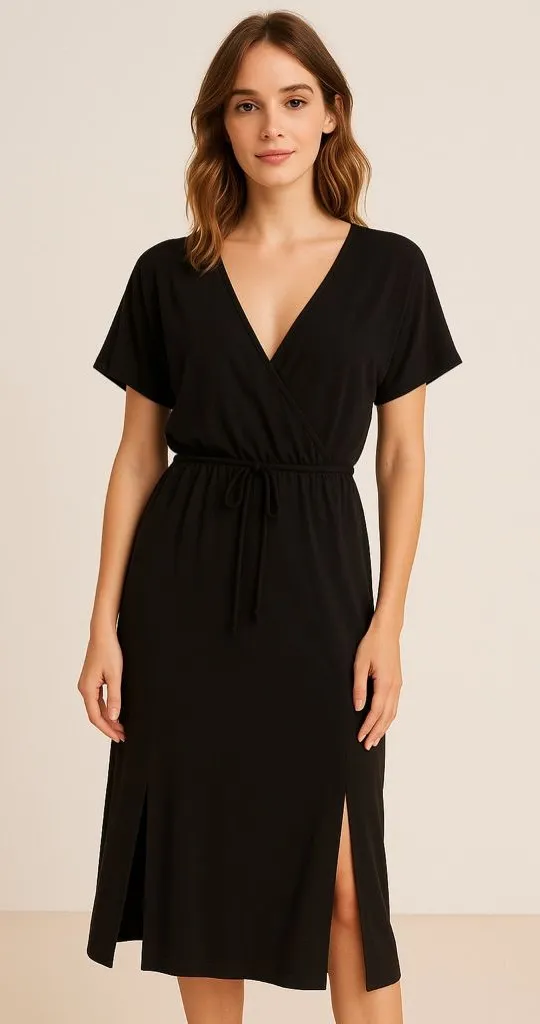 Revolve Z SUPPLY Maryn Wrap Midi Dress – Black – NWT XS — Snap V-Neck & Rope Belt Elevate your eve... Show more