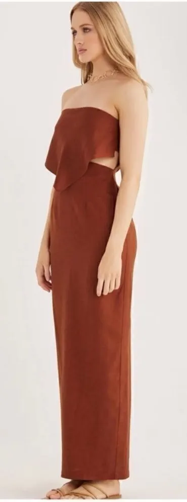 Rumer Roam Chocolate Brown Linen Bandana with Cutouts Maxi. - Size: Medium - Condition: New with... Show more