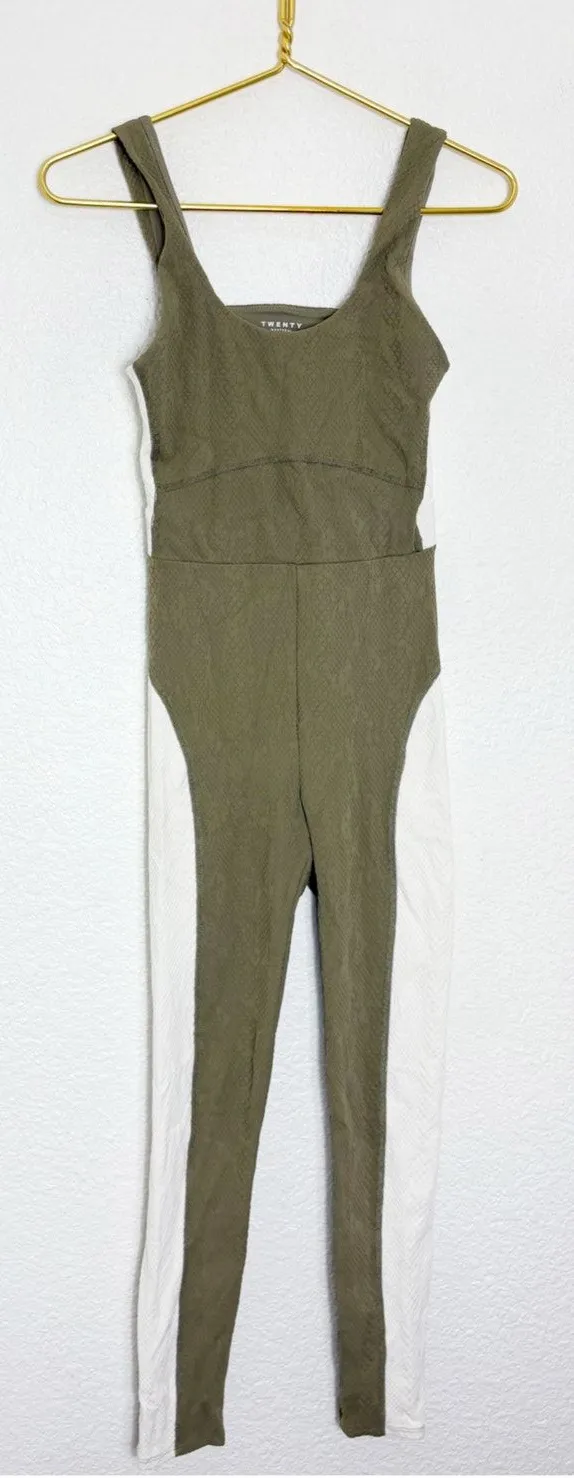 $200 Revolve Twenty Montreal Caiman 3D Crocodile Jumpsuit Size XS Olive Green Cream Workout Great p... Show more