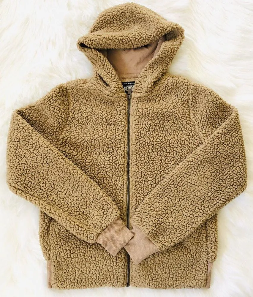Rewash Hooded Teddy Fuzzy Bear Zip Up Soft Tan Zip Up, Front Pockets, Hooded, Ribbed detail along ba... Show more