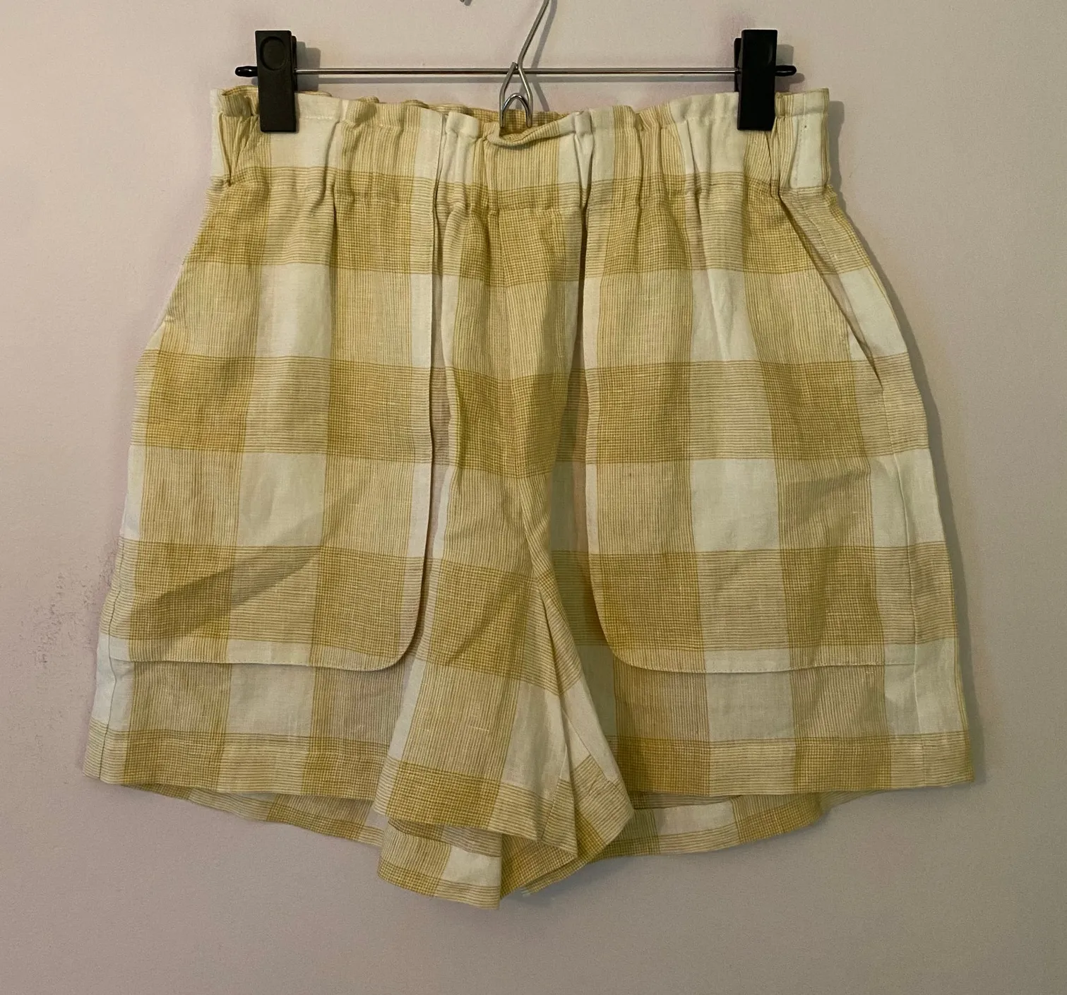 Elevate your summer wardrobe with these charming R.G. Kane linen shorts! Featuring a delightful white and tan plaid pattern, these paperbag waist shorts offer a comfortable and stylish fit. - Brand: R.G. Kane - Size: Small - Color: White and Tan Plaid - Material: 100% Linen - Style: Oxford Paperbag Shorts Perfect for warm weather outings, these shorts are a must-have for any fashion-forward woman. Grab them now and add a touch of sophistication to your closet! Measurements as pictured. In great pre-owned condition, see photos for more details. Always feel free to ask any questions you may have! Reasonable offers accepted. plaid, linen, paperbag, oxford, high waisted, preppy, summer