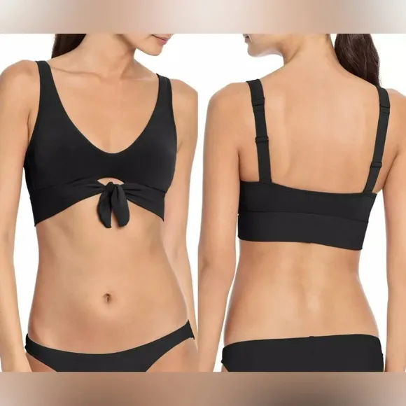 Robin Piccone Ava Knot Front Bikini Top And Ava High Waist Bottom Set Size Med Black - $89 - From Alissa