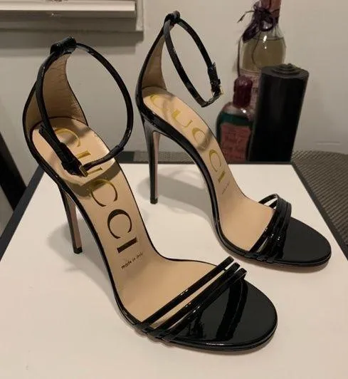 NIB Gucci Leather Stiletto Nero Pump Leather stiletto pump. Open toe. Leather construction Ankle st... Show more
