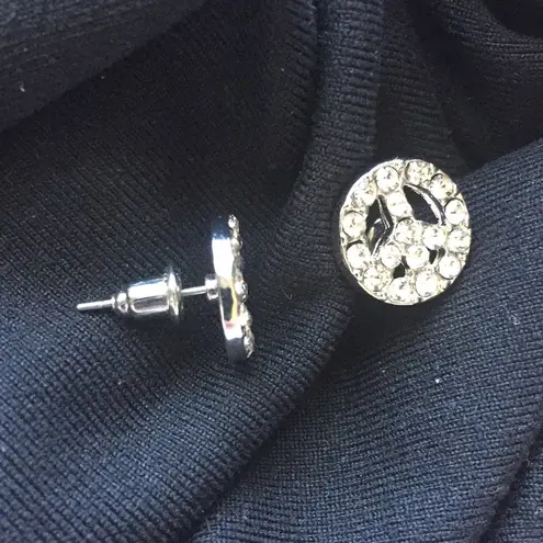 Sparkly peace stud earrings!! New without tags! Never worn. Christmas birthday anniversary valentine day gift present fashion style street crystal rhinestone sixties 60 flower child flower power vintage antique war music