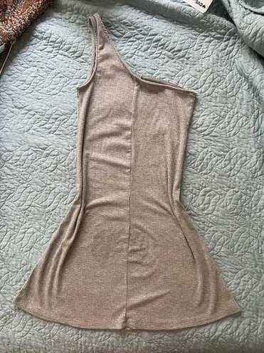 Extra small, fits up to a small Worn and washed once but it has a stain on the back side that can either be removed or covered by a jean jacket, etc (check photos for details) One shoulder