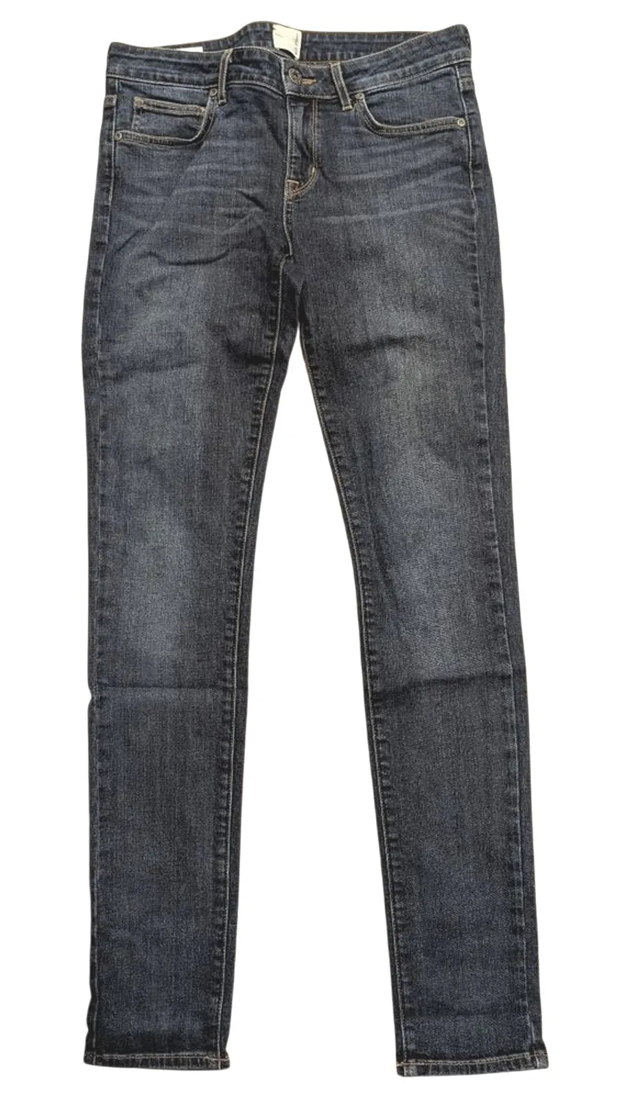 RICH & SKINNY Skinny/Slim Leg, Button/zip fly, belt loops, classic 5 pocket style, dark 'antique' wash!! These are in fantastic, pre-worn condition!!! Made in U.S.A. Waist: 30-31" Rise: 8.5" Hips: 35-36" Inseam: 32" Leg Opening: 5.5" across bottom hem