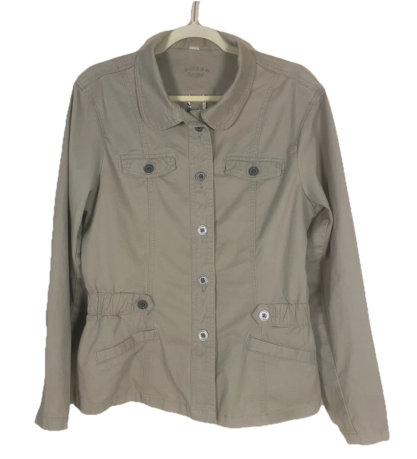 Riders Copper Women's Large Khaki Field Safari Jacket Tan Outdoor Utility Good Pre-Owned Condition - no flaws noted This is a pre-loved item and sold as is. See photos for additional details as they are part of the description. Item is photographed and described to best of my ability and any omissions or errors are unintentional. If you are unsure, please contact me with questions or for additional photos before purchasing. Tape measure only for reference and is not included. Thank you for your interest. Please check my other listings for similar size.