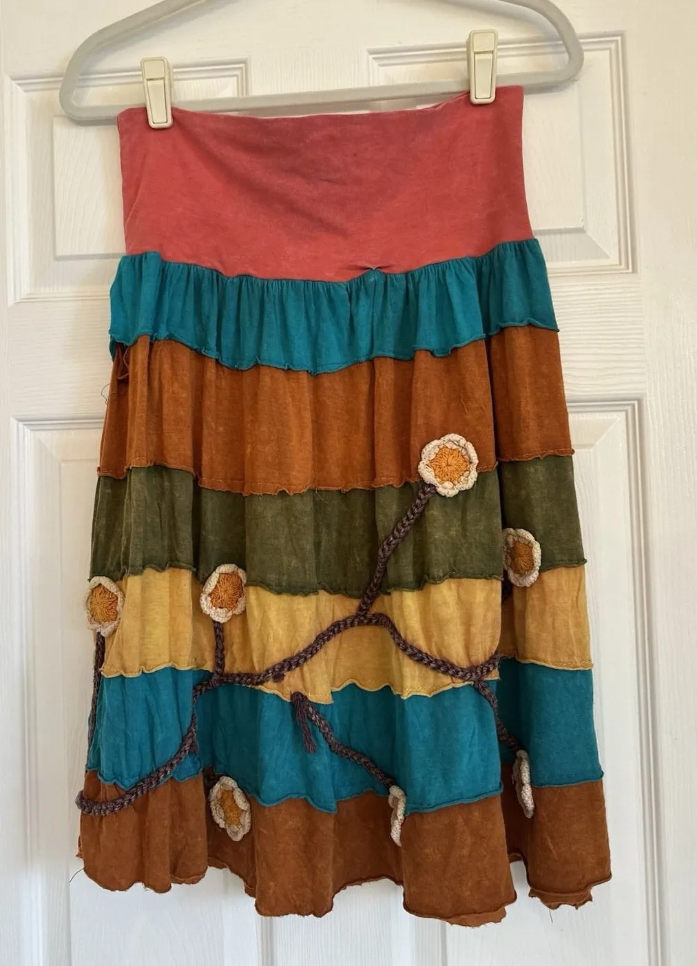 Riding International Boho Tiered Skirt Women's Sz M Flower Appliques Festival Size M - $18 - From April