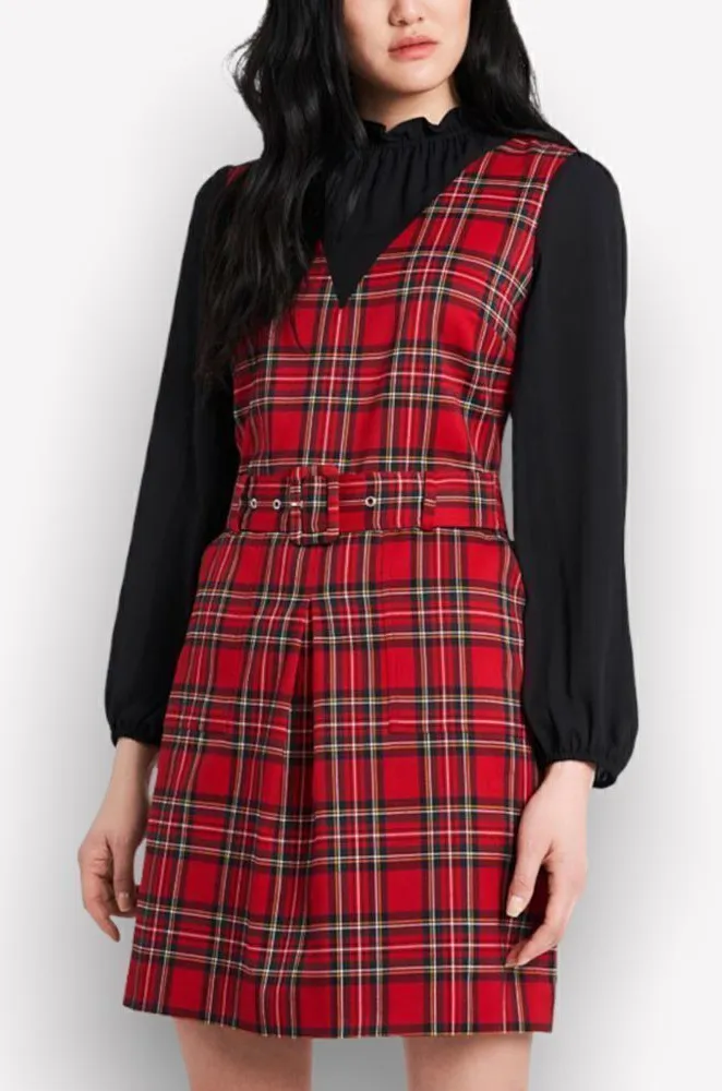 Riley & Rae Estelle Plaid Dress Vermillon Size XXS color Black and Red Pattern Plaid Removable matc... Show more