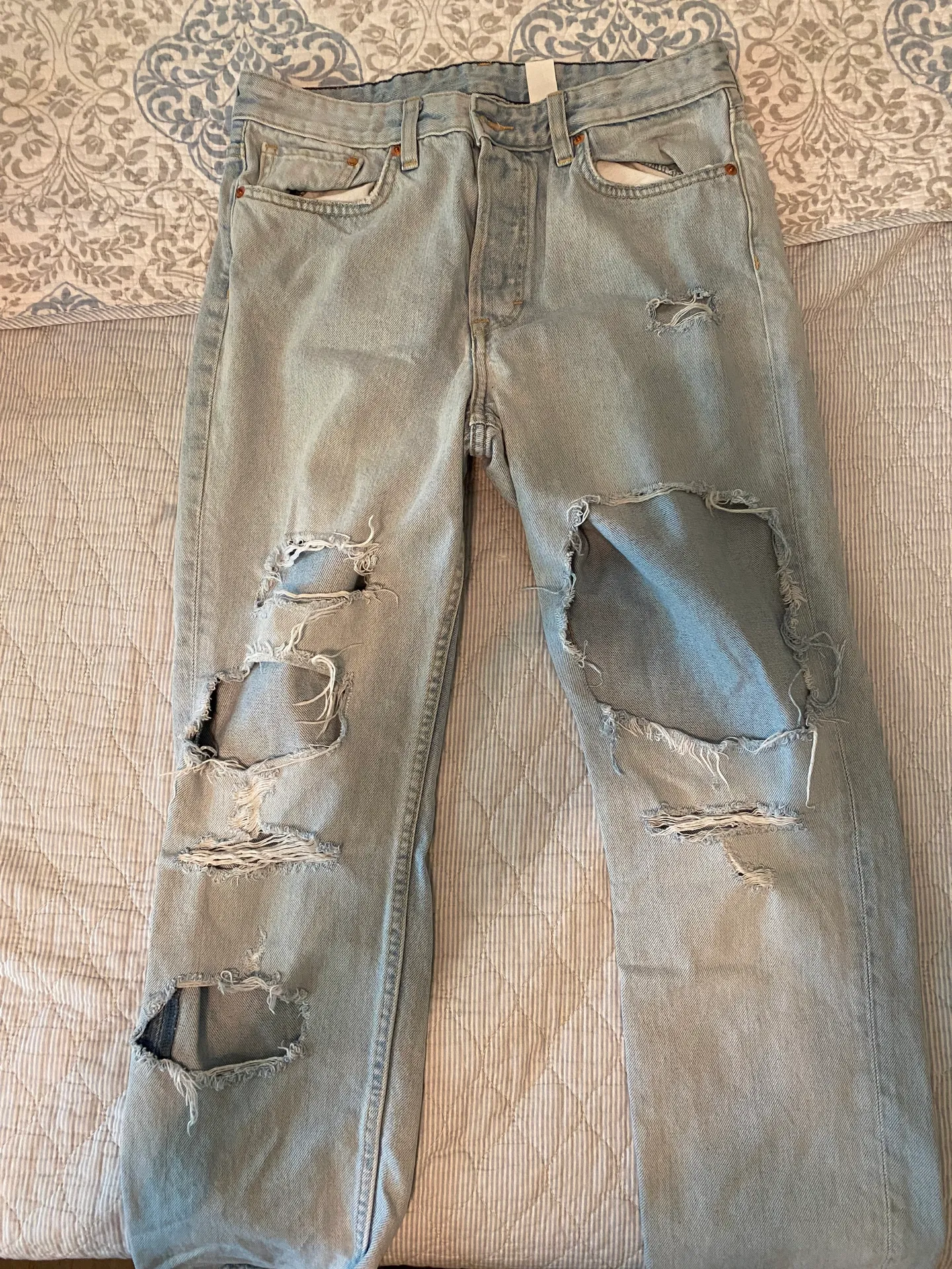 Ripped High Wasted Mom Jeans Blue Size 30 - $12 (52% Off Retail) - From Chloe