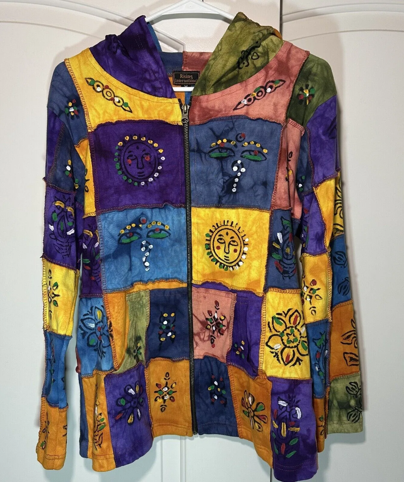 Rising International Boho Hoodie Womens M Colorful Full Zip Festival Hippie Y2K Review photos for c... Show more