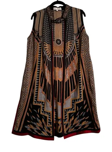 Ritu Kumar Silk Beaded Vest Open Front Boho Artsy Layering Lagenlook Size Large Length 37” Side Slits Hook & Eye On Collar *Bead dangling in back as pictured Overall Great Condition