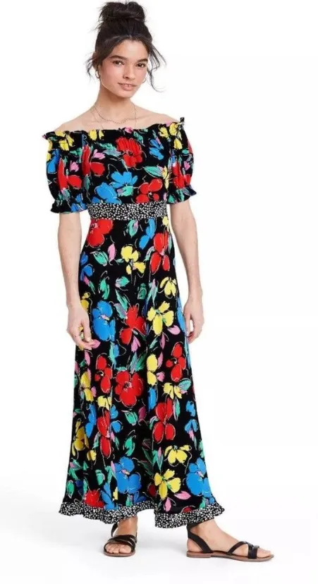 Rixo London Floral Off the Shoulder Puff Maxi Dress Black Size 8 - $38 - From Kelly