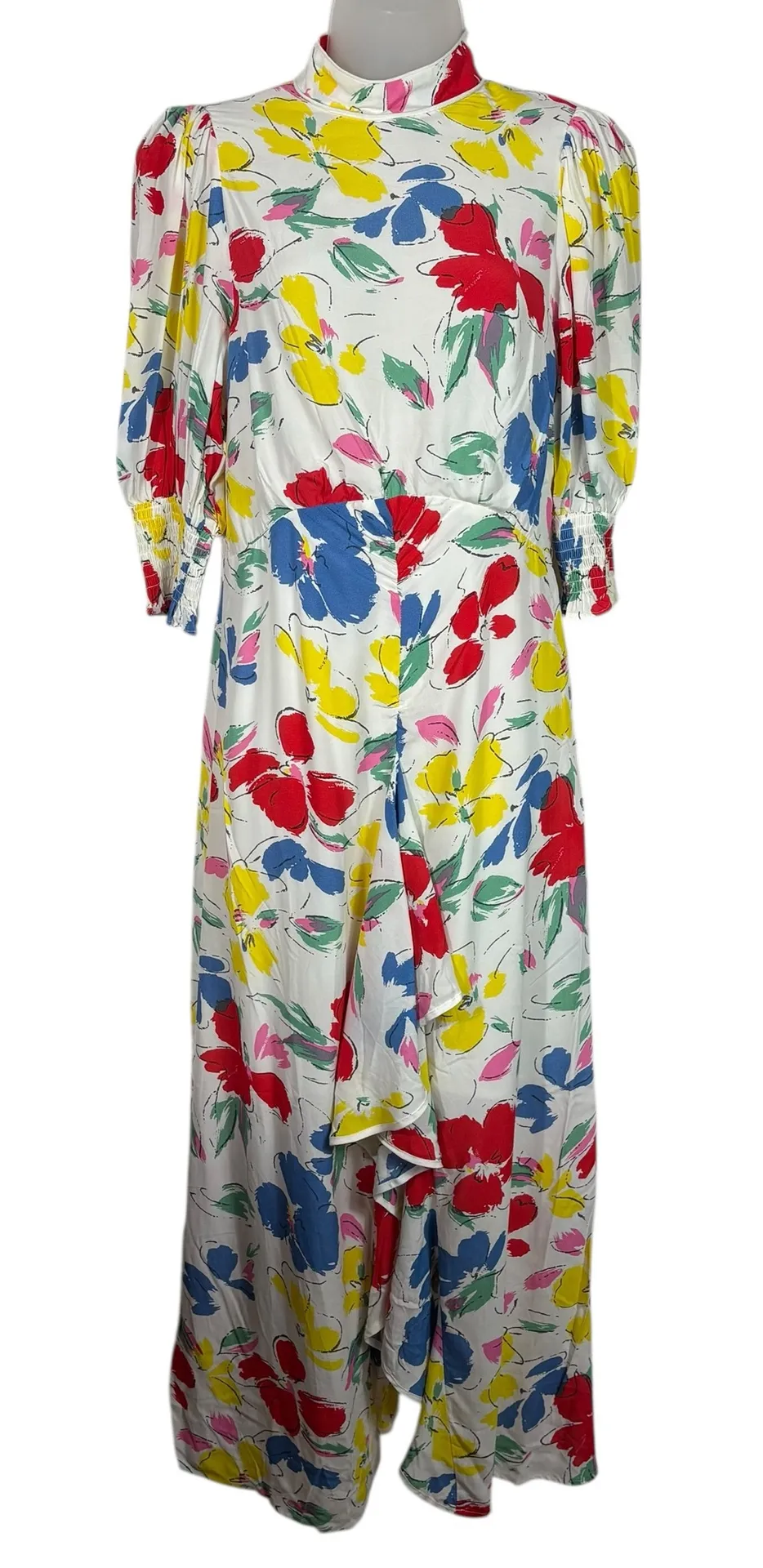 In good condition! White chiffon material with a slip lining. Ruffle detail on the front. Zip closur... Show more