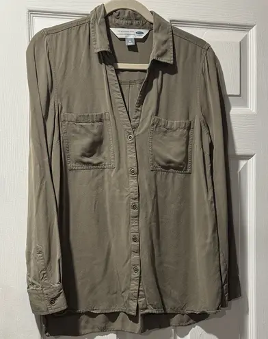 Old Navy olive green button down shirt with a slight v neck. Size medium. Considered the boyfriend s... Show more