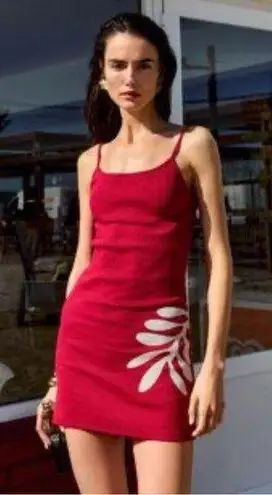 Reformation Ibiza dress red with white flower stretch best seller sold out !