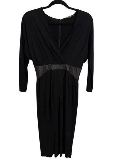 Roberto Cavalli Dress Womens IT40 US4 Ruched Midi Sheath Black V-Neck Long Sleeve. Good Preowned Con... Show more