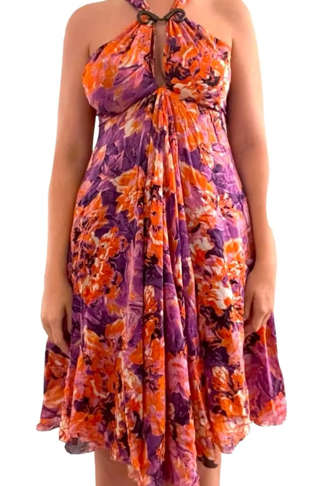 •BRAND: ROBERTO CAVALLI JUST CAVALLI •COLOR: MULTI •STYLE: SLEEVELESS •MATERIAL: SILK BLEND •SIZE: IT SIZE 44= US Size 8/L (See Pic) •APPROXIMATE MEASUREMENTS: Waist-13” Arm Pit to Arm Pit- 14” Length- 38” •CONDITION: NEW WITH TAGS $795 ******* PLEASE NOTE THE LAST PICTURE SHOWS WHERE THERE IS A SMALL TEAR AT THE V IN THE FRONT •ADDITIONAL INFORMATION: Floral print, pullover, lined, heavy metal Roberto Cavalli horns on front. **** PLEASE NOTE MEASUREMENTS ARE PROVIDED AS APPROXIMATE ONLY. I AM NOT A PROFESSIONAL SEAMSTRESS AND BY NO MEANS SHOULD THEY BE TAKEN AS 100% ACCURATE.