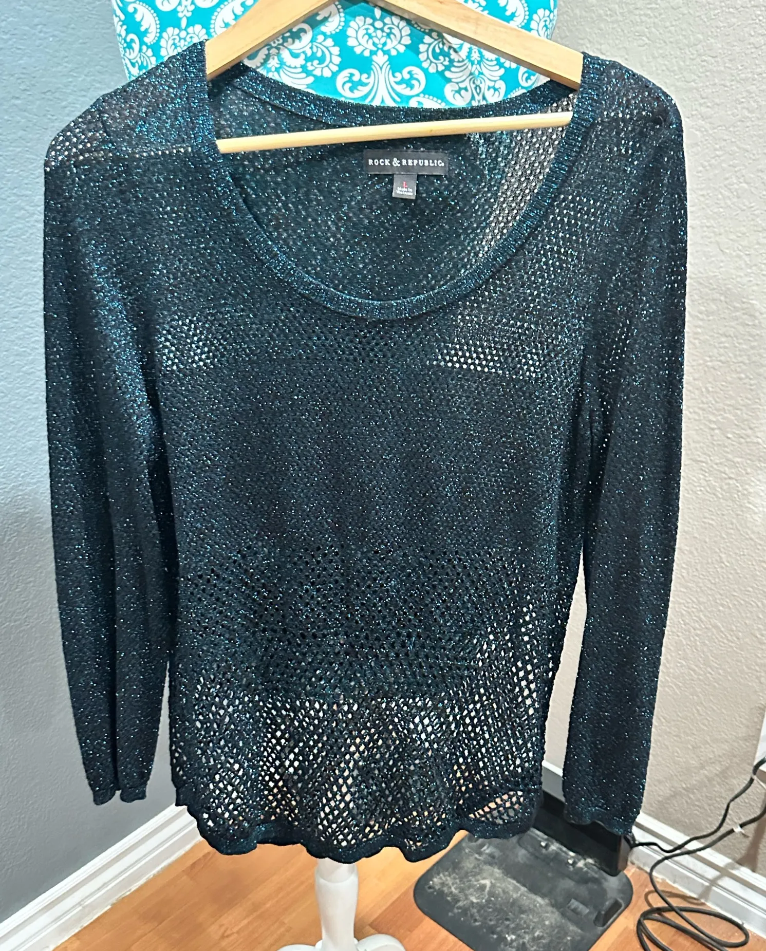 Mesh knit metallic green holiday sweater L Rock Republic Size L - $38 - From Niki