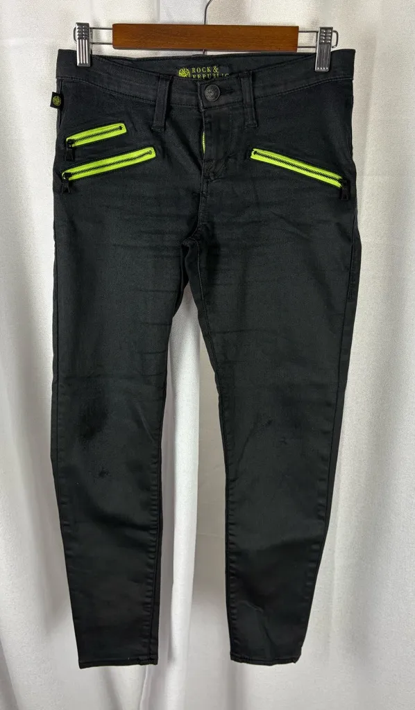 🖤 Rock & Republic Banshee Jeans 🖤 Black with Neon Green Accents | Waxed Finish Edgy Rock & Republ... Show more
