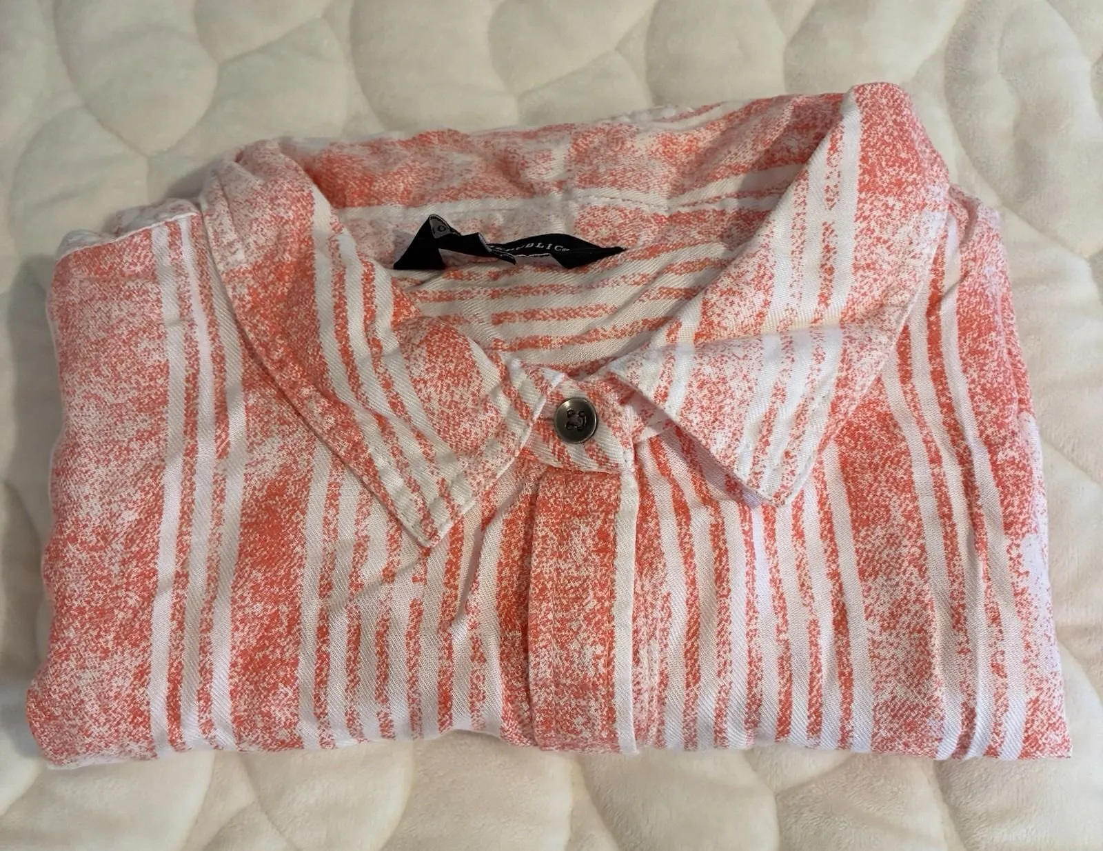 Pit to pit 22" Length 24" This Rock & Republic women's shirt features a classic red and white stri... Show more
