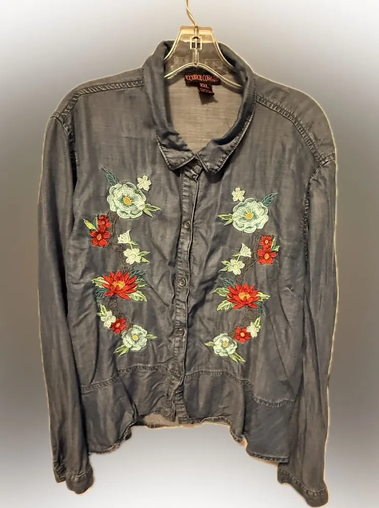 Rock & Roll Cowgirl Floral Embroidered Shirt Blue Size XXL - $24 - From Flippin