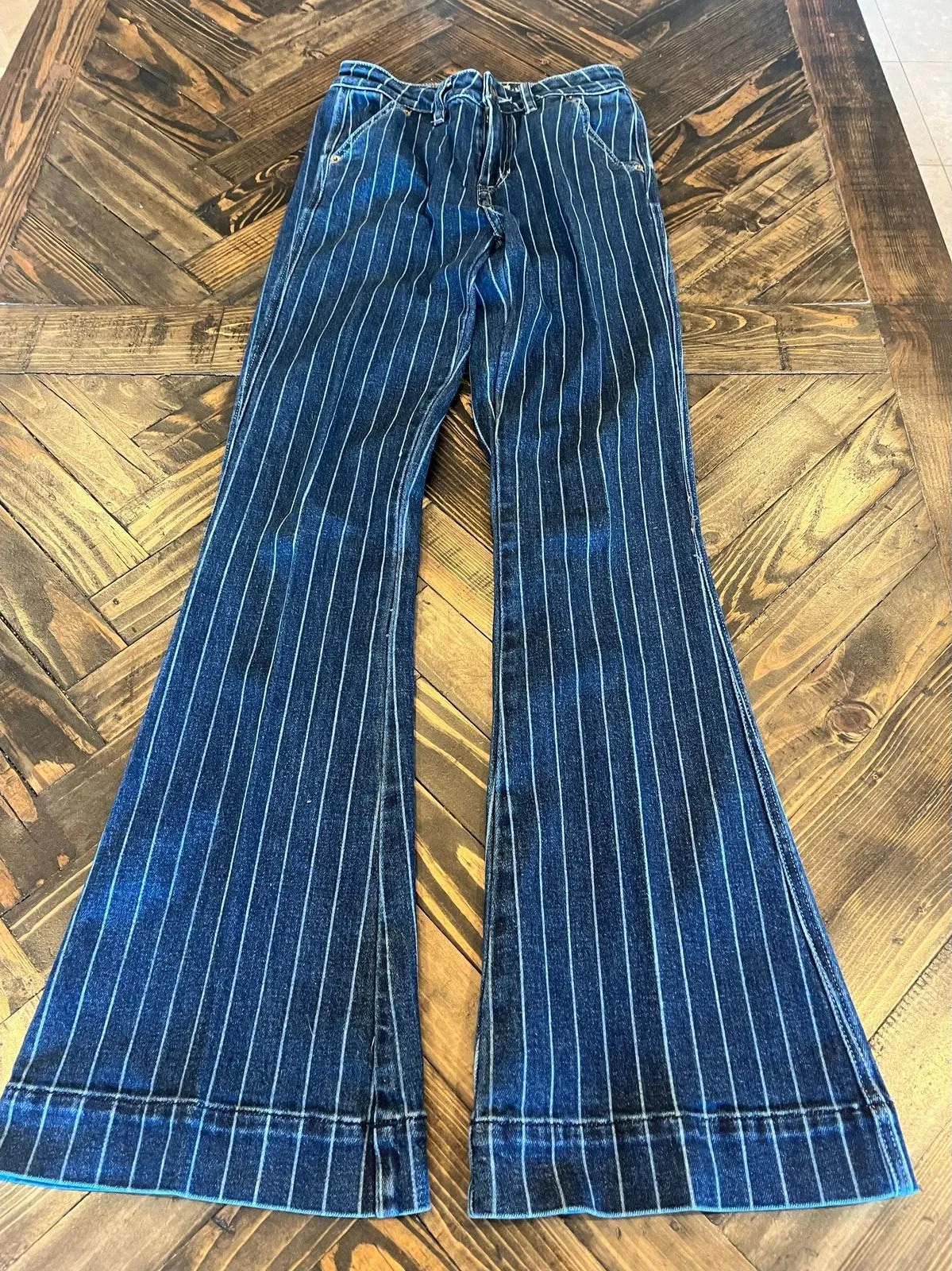Rock & Roll Cowgirl High Rise Trouser Jeans Women 26x34 Western Aztec Boho Flare Blue Size 26 - $43 - From Paige