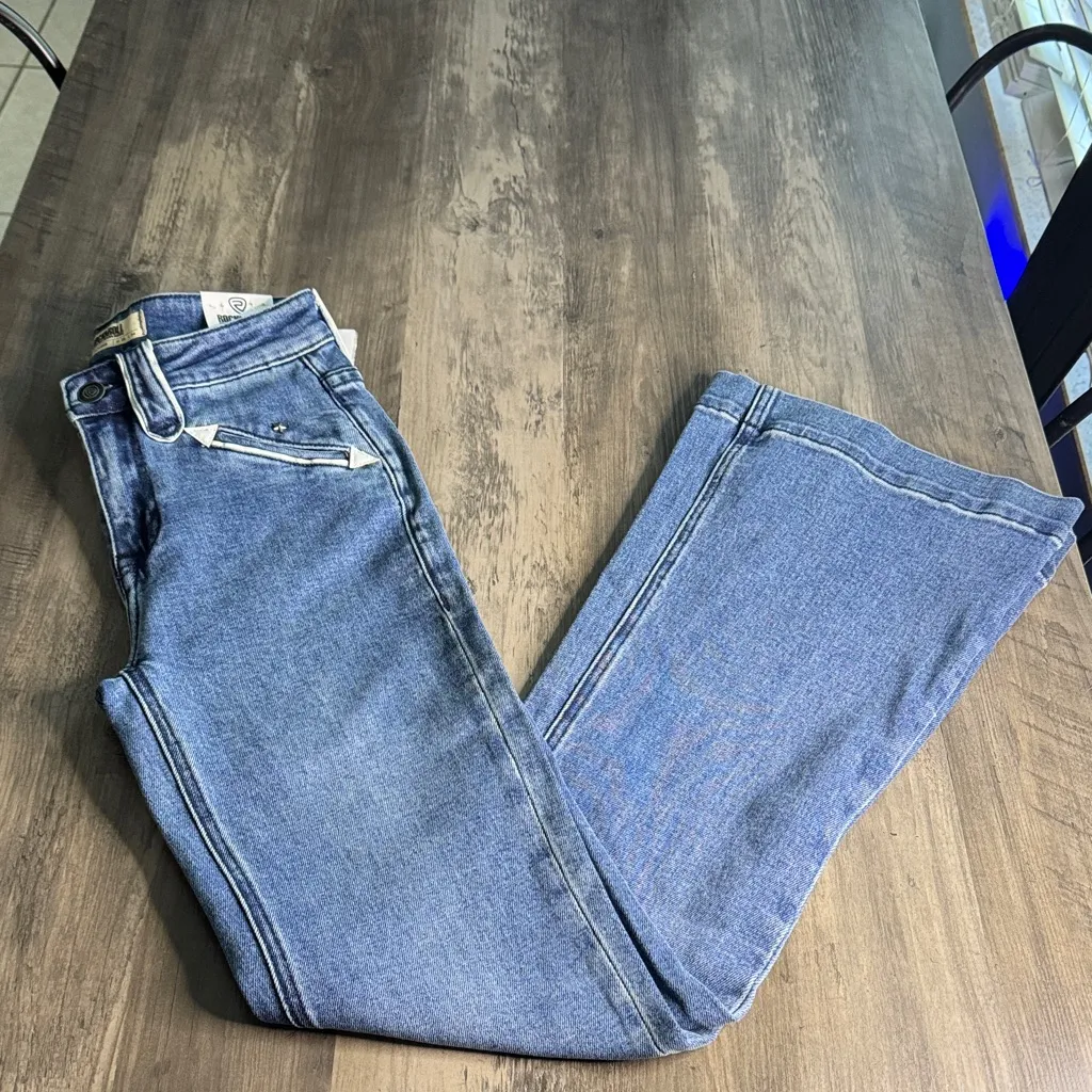 Rock & Roll Denim Women's Blue Flare Jeans With White Accents Size undefined - $55 New With Tags - From Katrina