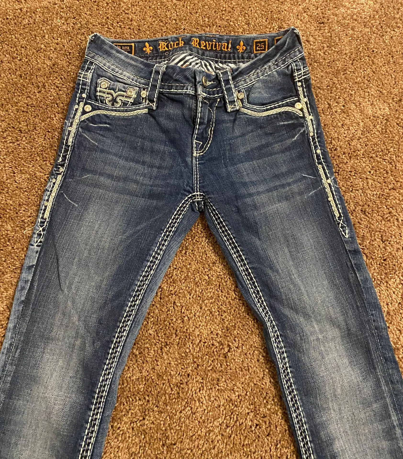 Is missing a couple of jewels on the back pockets but other then that in perfect condition!!