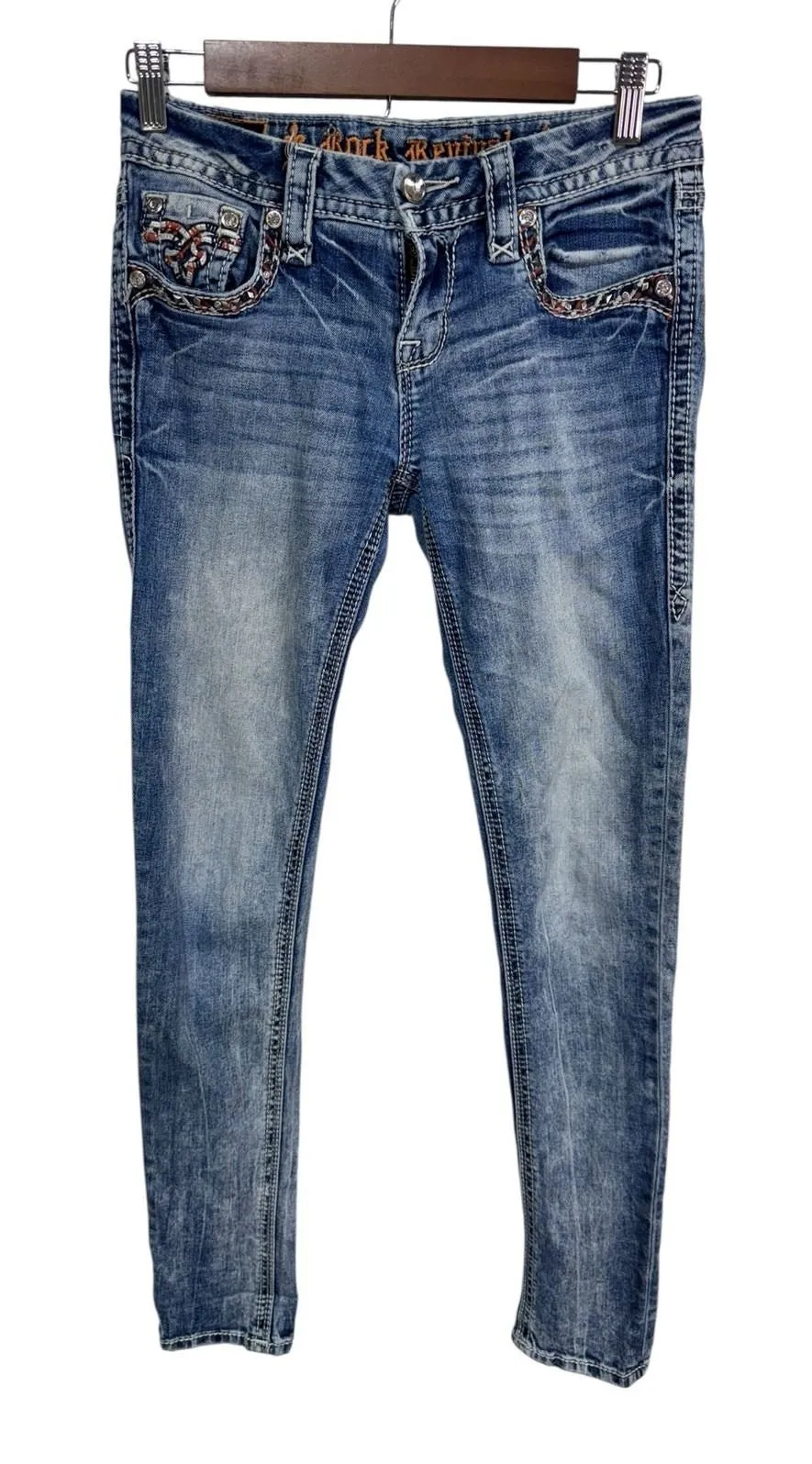 Rock Revival Sherry Skinny Jeans Medium Wash Embroidered Flap Pocket Women's 26 Description: Rock R... Show more
