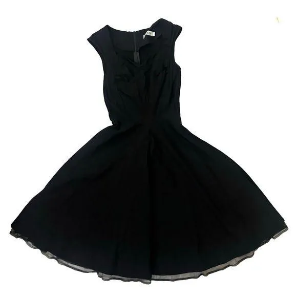 Rockabilly Swing Dress, 50s Elegance. Women’s SM but can fit a medium. Solid Black. Sheer tulle trim... Show more