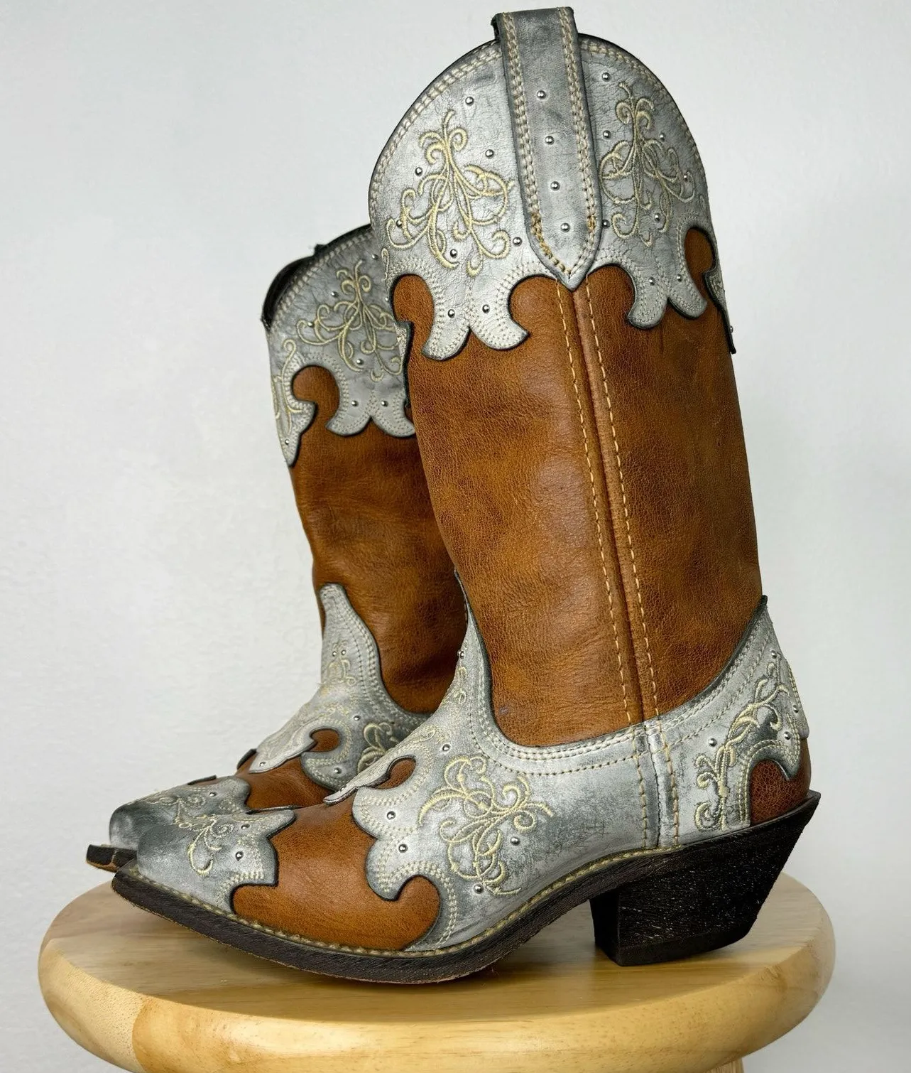 ROCKIN Country Womens Cowgirl Cowboy Western Boots Brown Distressed Leather SZ 5 - $129 - From Emily