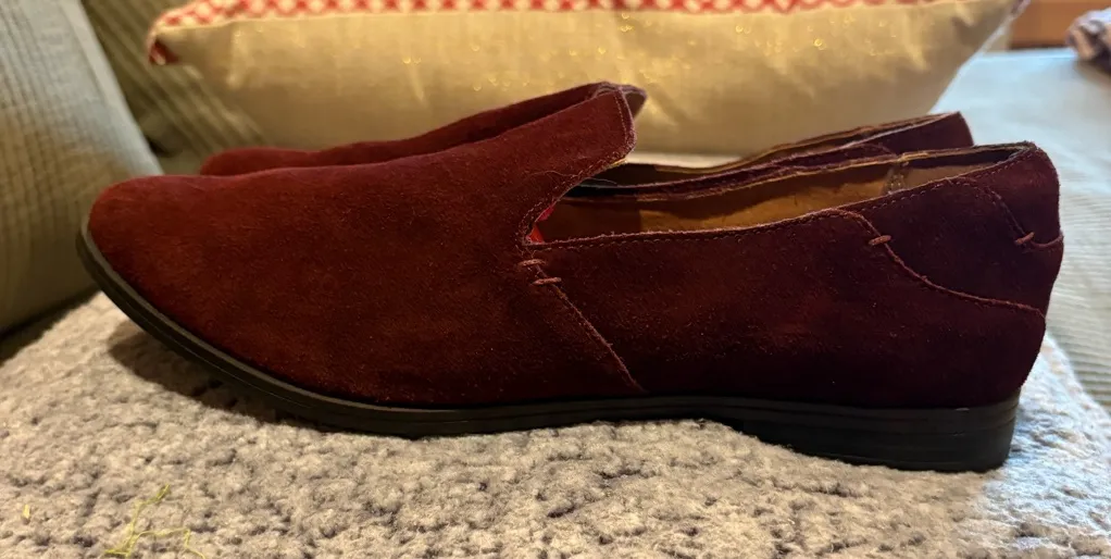 These "Rockport women's suede slip-on loafers, Perpetua" a burgundy or oxblood color. They often inc... Show more