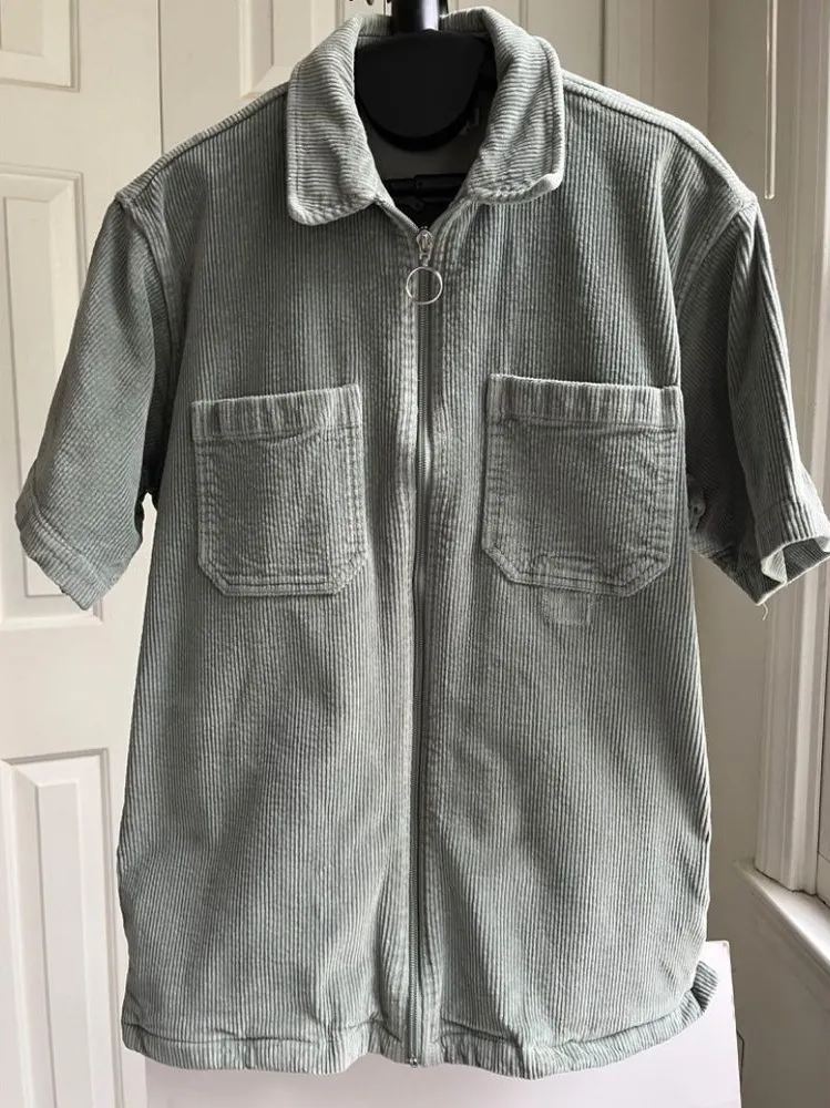 Rokit Sage Cotton Corduroy Short Sleeve Full Zip Jacket Pockets Shirt, Size M Pit to pit 22" inch L... Show more