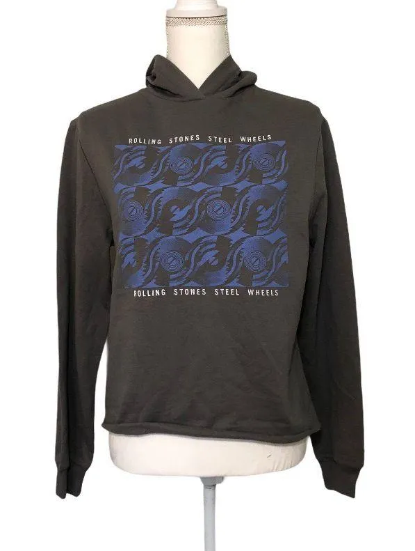 Dark gray long sleeved hoodie/hooded sweatshirt pullover featuring a front Rolling Stones Steel Whee... Show more